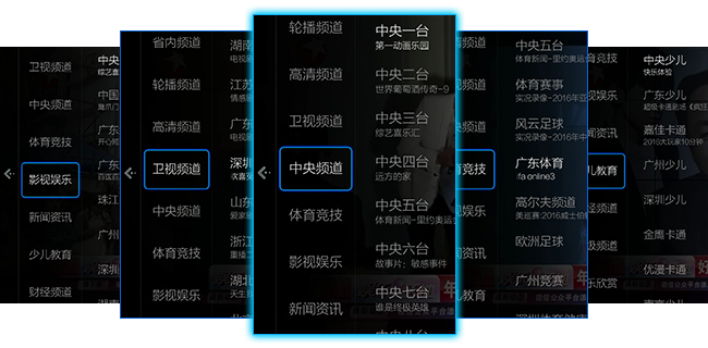 于果电视直播运行于智能电视机顶盒或者智能电视机,操作简单,集直播、回看、预约、一周节目表(EPG)于一身,继承传统的上下键换台,无需任何学习,下载即可上手。具有行业领先的频道收藏、隐藏、WIFI传源等功能。
